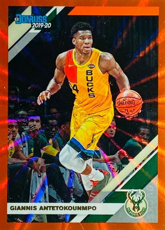 2019-20 Donruss Giannis Antetokounmpo Orange Holo Laser Refractor insert card