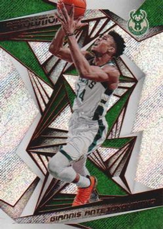 The Giannis Antetokounmpo 2019 Revolution #76 Base card is 1 of 31 Giannis Antetokounmpo's card variations in the 2019 Revolution set being tracked by Sports Card Investor, including Astro, Chinese New Year, Fractal, Groove, and Liftoff!.
