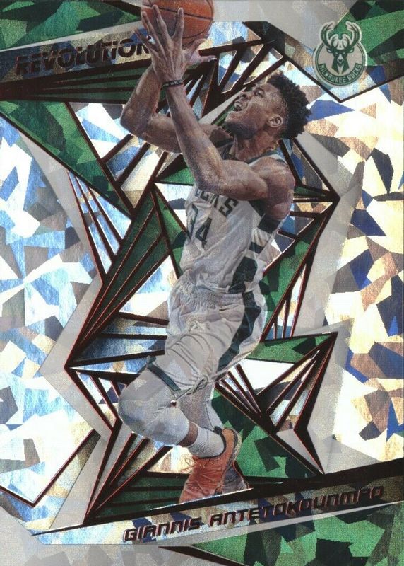 This card is 1 of 31 Giannis Antetokounmpo's card variations in the 2019 Revolution set being tracked by Sports Card Investor, including Base, Astro, Fractal, Groove, and Liftoff!.