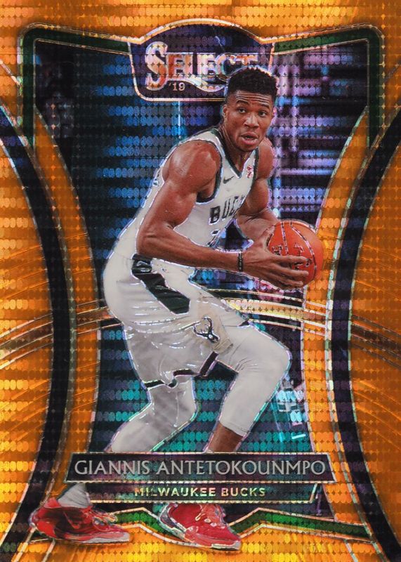 Giannis Antetokounmpo 2019 Select #148 Premier Level FOTL Neon Orange Pulsar /13 RAW Price Guide