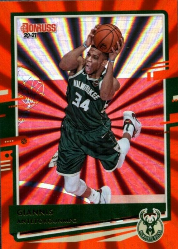2020-21 Donruss Basketball #104 Giannis Antetokounmpo Orange Lazer SP Bucks
