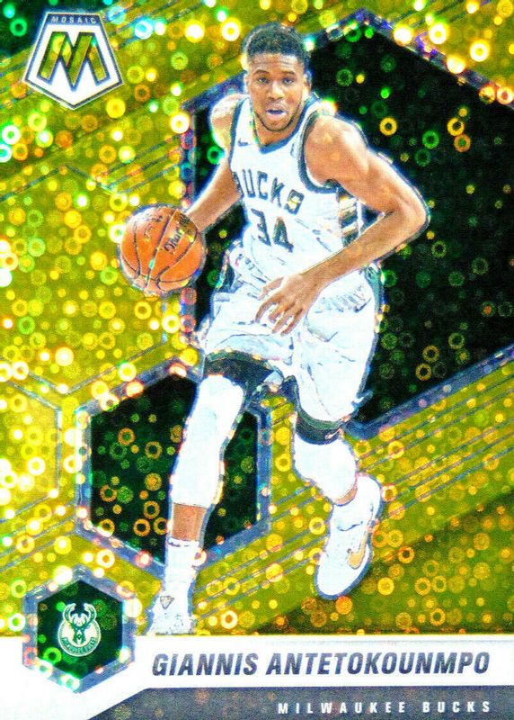 This card is 1 of 41 Giannis Antetokounmpo's card variations in the 2020 Mosaic set being tracked by Sports Card Investor, including Base, Fast Break, Gold Wave, Green, and Green Ice.