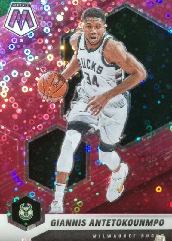 The Giannis Antetokounmpo 2020 Mosaic #80 Fast Break Pink /20 card in Raw condition has not changed in price in the last 30 days and was last sold for $7.50 .