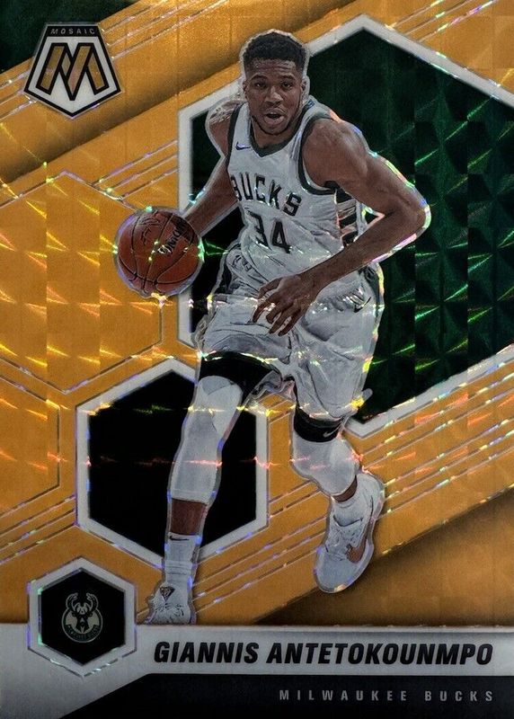 This card is 1 of 41 Giannis Antetokounmpo's card variations in the 2020 Mosaic set being tracked by Sports Card Investor, including Base, Fast Break, Gold Wave, Green, and Green Ice.