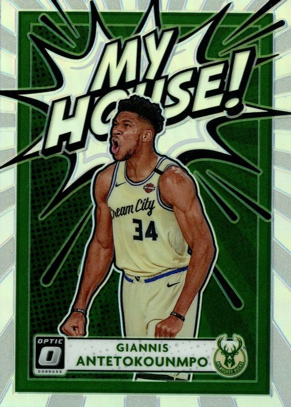 The Giannis Antetokounmpo 2020 Optic #2 My House! - Holo card in Raw condition has moved up $0.25 (+16.7%) in the last 30 days and was last sold for $1.75 .