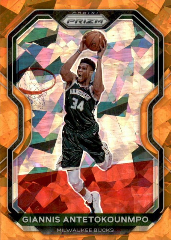 2020-21 Panini Prizm Giannis Antetokounmpo Orange Cracked Ice Parallel NM