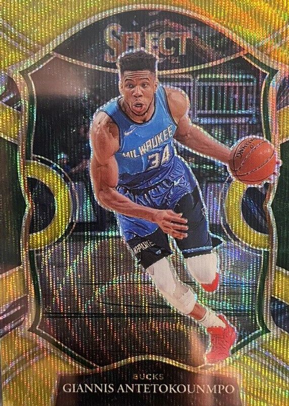 2020-21 Panini Select Giannis Ahtetokounmpo Concourse Gold Wave Prizm Bucks