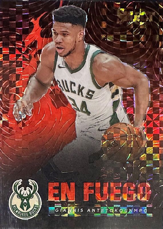 The Giannis Antetokounmpo 2020 Select #1 En Fuego - Black /1 card in Raw condition has not changed in price in the last 30 days and was last sold for $1,830.00 .