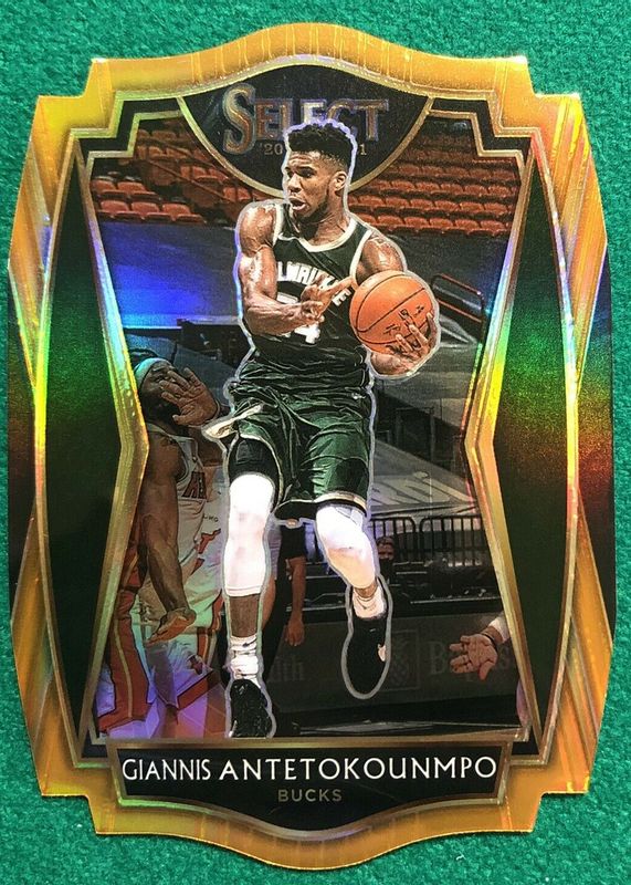 The Giannis Antetokounmpo 2020 Select #117 Premier Level Orange Die-Cut /65 card in Raw condition has not changed in price in the last 30 days and was last sold for $45.00 .