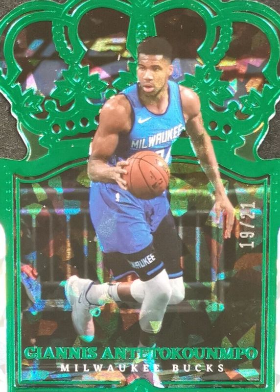 Giannis Antetokounmpo 2021 Crown Royale #4 FOTL Green Crystal /21 RAW Price Guide