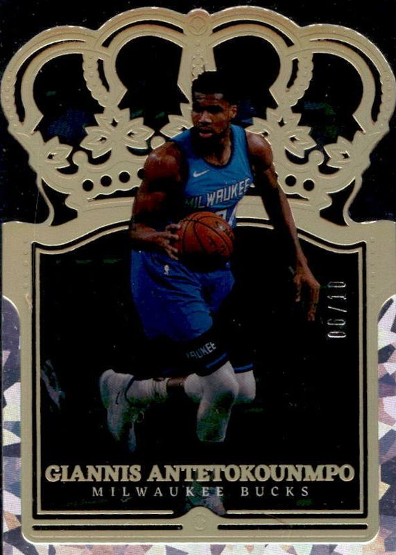 The Giannis Antetokounmpo 2021 Crown Royale #4 Gold Crystal /10 card in Raw condition has not changed in price in the last 30 days and was last sold for $53.50 .