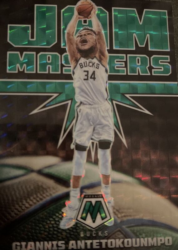 2021/22 Panini Mosaic Giannis Antetokounmpo Green Prizm Jam Masters #6-NM/M