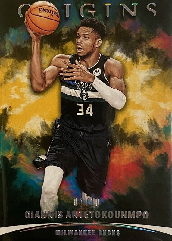 This card is 1 of 16 Giannis Antetokounmpo's card variations in the 2021 Origins set being tracked by Sports Card Investor, including #34 Base, #34b Base, #34 Photo Variation, #34 Red, and #34 Blue /99.