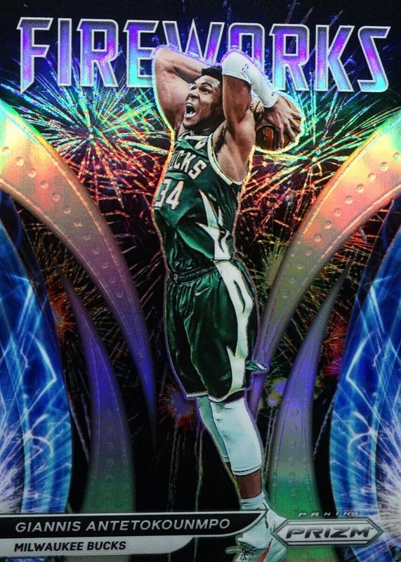 2021-22 Prizm Fireworks Silver Prizm- Giannis Antetokounmpo Milwaukee Bucks!