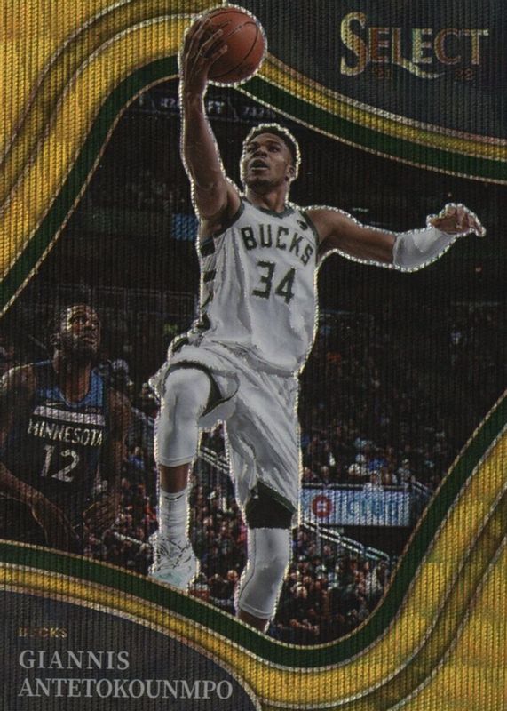 2021-22 Select Basketball Giannis Antetokounmpo Gold Wave Courtside Mint!