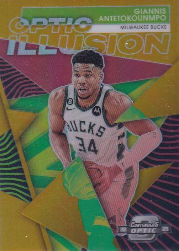 Best Prices Available For Sale of Giannis Antetokounmpo 2022 Contenders Optic #14 Optic Illusion - Gold /10