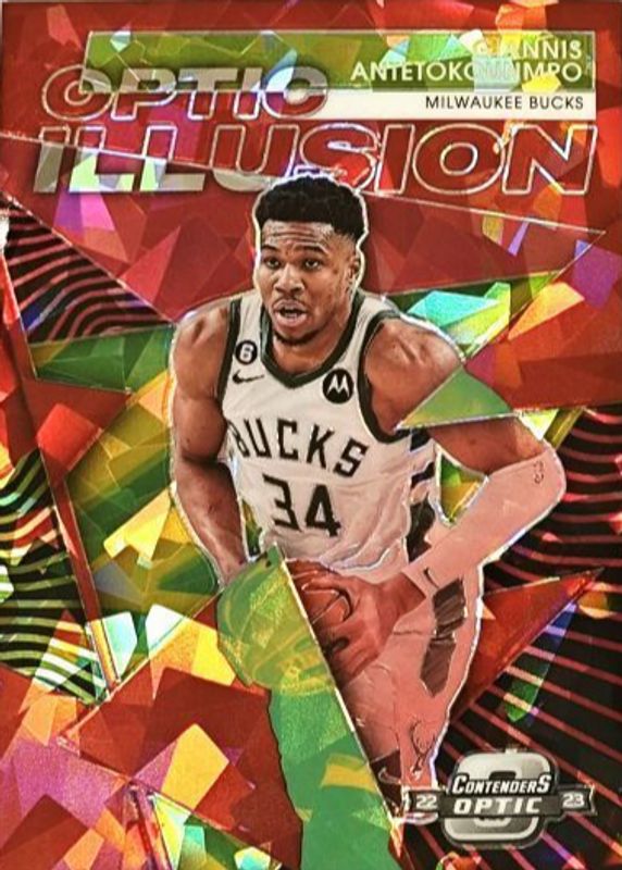 GIANNIS ANTETOKOUNMPO 2022-23 Panini Contenders Optic Illusion Red Cracked Ice
