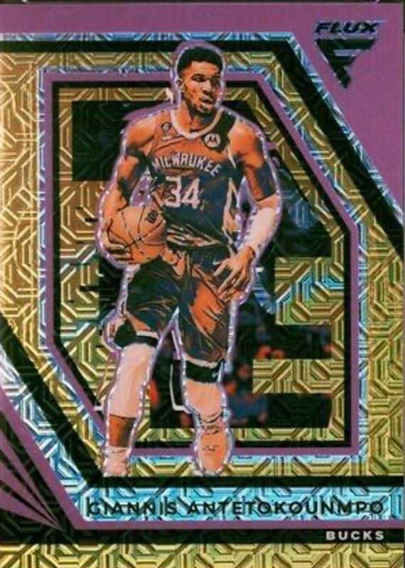 This card is 1 of 45 Giannis Antetokounmpo's card variations in the 2022 Flux set being tracked by Sports Card Investor, including Base, Moonlight, Red Cracked Ice, Silver Mojo, and Sunrise.