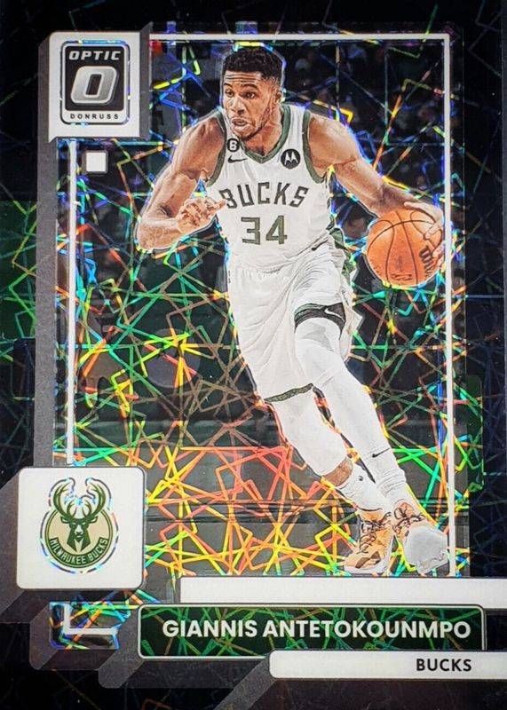This card is 1 of 109 Giannis Antetokounmpo's card variations in the 2022 Optic set being tracked by Sports Card Investor, including Base, Checkerboard, Choice Red & Green, Fast Break, and Green Shock.