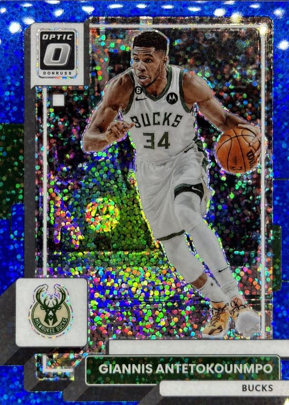 2022-23 Donruss Optic #75 Giannis Antetokounmpo Blue Sparkle #/180