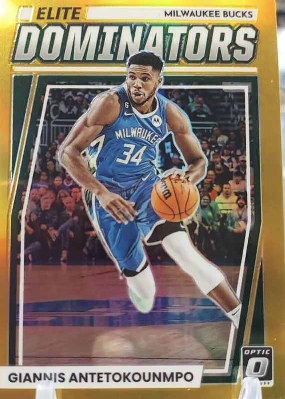 The Giannis Antetokounmpo 2022 Optic #21 Elite Dominators - Gold /10 card in Raw condition has not changed in price in the last 30 days and was last sold for $60.00 .