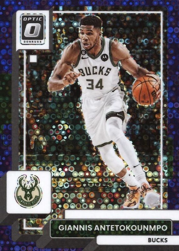 2022-23 Donruss Optic Giannis Antetokounmpo Fast Break Purple #28/99 #75