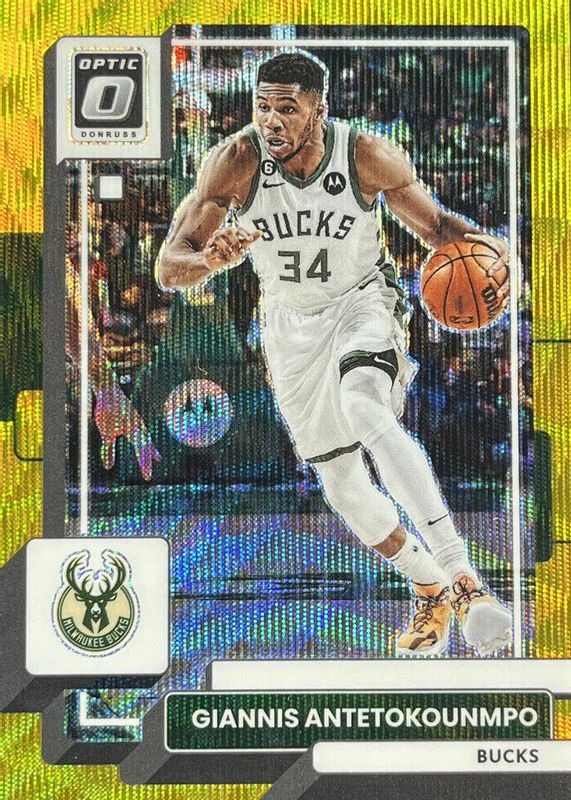 The Giannis Antetokounmpo 2022 Optic #75 Gold Wave /10 card in Raw condition has not changed in price in the last 30 days and was last sold for $96.00 .