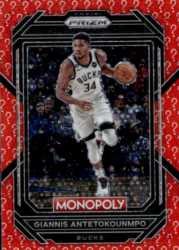 Giannis Antetokounmpo 2022 Prizm Monopoly #49 Question Mark RAW Price Guide