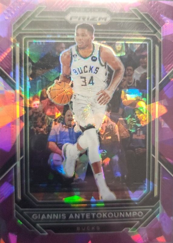 GIANNIS ANTETOKOUNMPO 2022-23 PRIZM PURPLE ICE /149 #96 BUCKS