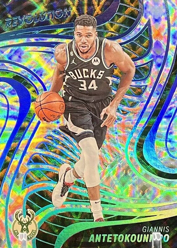 This card is 1 of 40 Giannis Antetokounmpo's card variations in the 2022 Revolution set being tracked by Sports Card Investor, including Base, Asia Red, Astro, Chinese New Year, and Fractal.