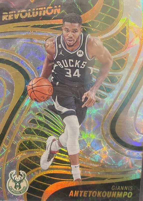 This card is 1 of 40 Giannis Antetokounmpo's card variations in the 2022 Revolution set being tracked by Sports Card Investor, including Base, Asia Red, Astro, Chinese New Year, and Fractal.