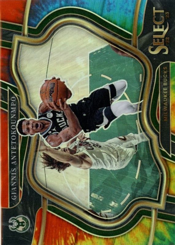 Select 2022-23 Giannis Antetokounmpo Courtside Tie-Dye Prizm /25 Milwaukee Bucks