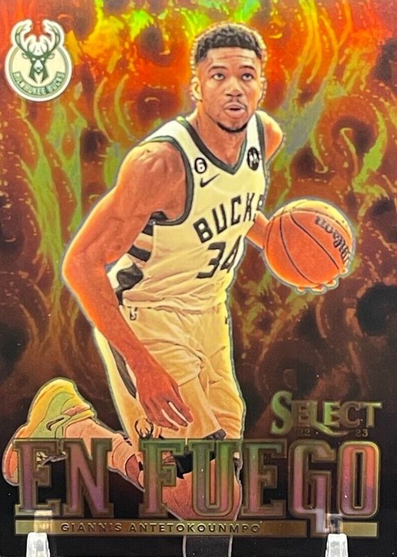 GIANNIS ANTETOKONMPO 2022-23 Panini Select EN FUEGO Silver Holo Prizm #1 BUCKS