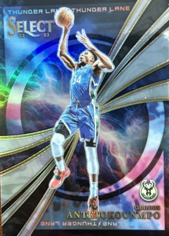 Giannis Antetokounmpo 2022-23 Panini Select Thunder Lane Insert Silver Prizm