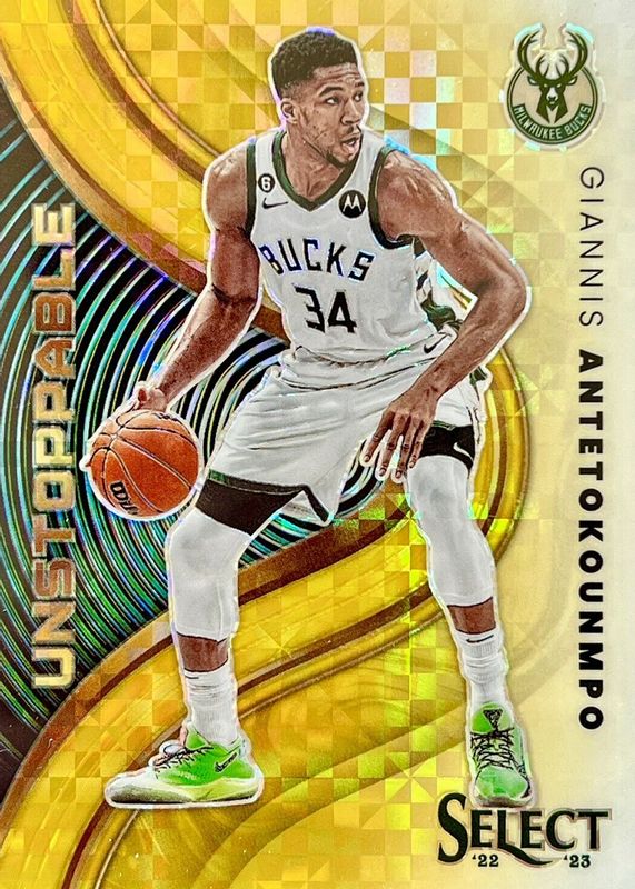 The Giannis Antetokounmpo 2022 Select #6 Unstoppable - Gold /10 card in Raw condition has not changed in price in the last 30 days and was last sold for $150.00 .