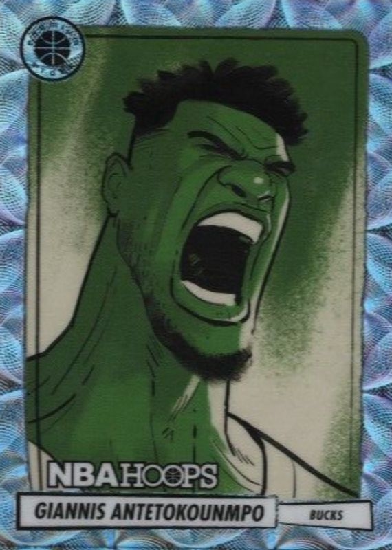 This card is 1 of 5 Giannis Antetokounmpo's card variations in the 2023 Hoops Premium Stock set being tracked by Sports Card Investor, including High Voltage /(SSP), HIPnotized /(SSP), Retro Net Marvels /(SSP), and Trophy Case /(SSP).