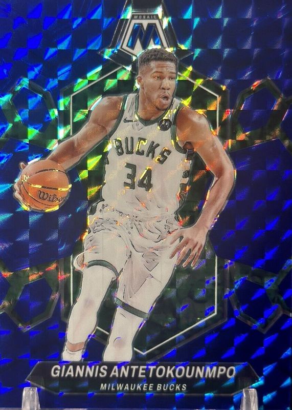 2023-2024 panini mosaic basketball giannis antetokounmpo blue prizm 174/199 #77