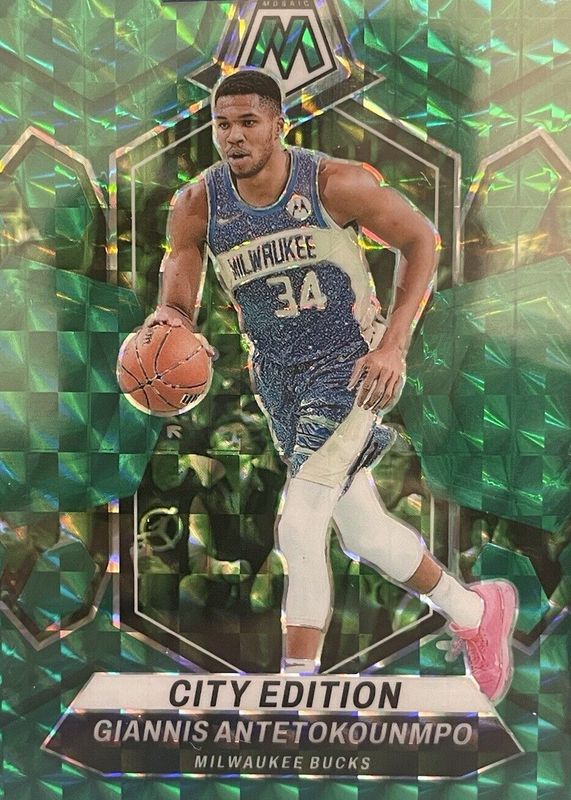 The Giannis Antetokounmpo 2023 Mosaic #279 City Edition - Choice Fusion Green /18 card in Raw condition has not changed in price in the last 30 days and was last sold for $19.99 .