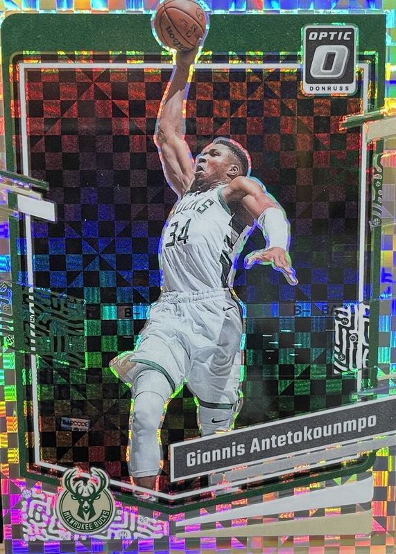The Giannis Antetokounmpo 2023 Optic #53 Checkerboard card in Raw condition has not changed in price in the last 30 days and was last sold for $15.00 .
