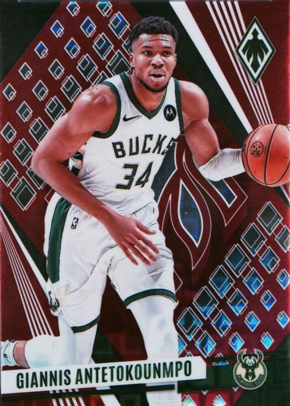 This card is 1 of 25 Giannis Antetokounmpo's card variations in the 2023 Phoenix set being tracked by Sports Card Investor, including Orange /99, International Red /75, Lava /75, Bronze Lazer /49, and Yellow /49.