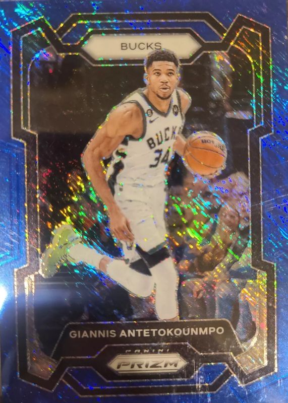 Auctions Ending Soon for Giannis Antetokounmpo 2023 Prizm #103 Blue Shimmer /35 RAW