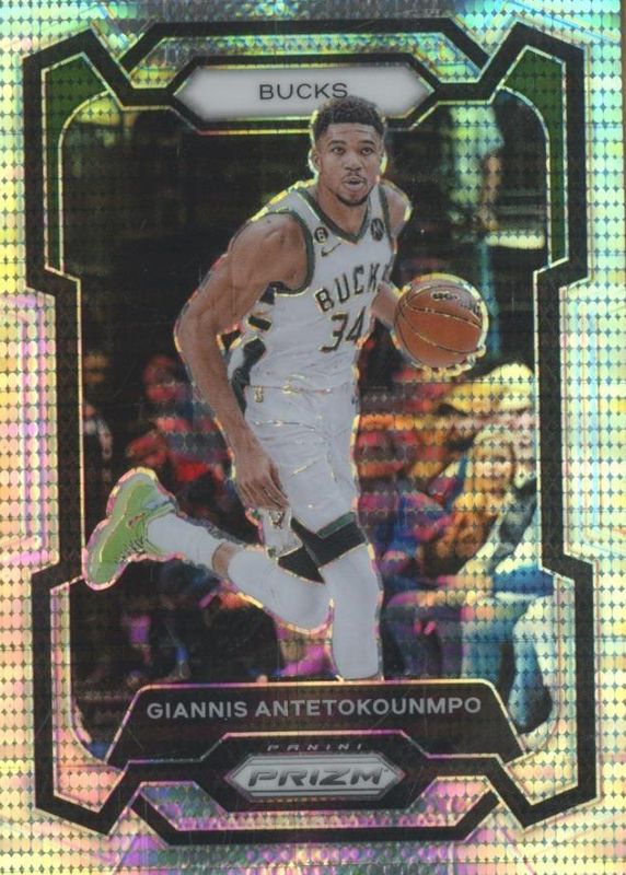 This card is 1 of 67 Giannis Antetokounmpo's card variations in the 2023 Prizm set being tracked by Sports Card Investor, including Blue Wave, Choice Blue Yellow Green, Fast Break, Green, and Green Ice.