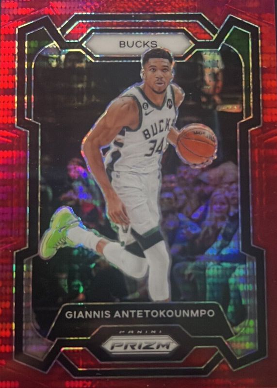 Best Prices Available For Sale of Giannis Antetokounmpo 2023 Prizm #103 Red Seismic /299