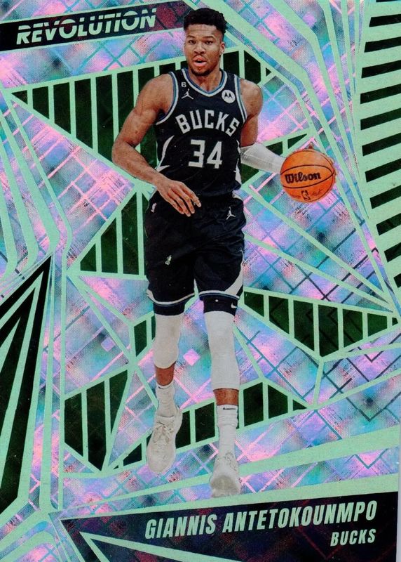 The Giannis Antetokounmpo 2023 Revolution #22 Cosmic /99 card in Raw condition has not changed in price in the last 30 days and was last sold for $13.50 .
