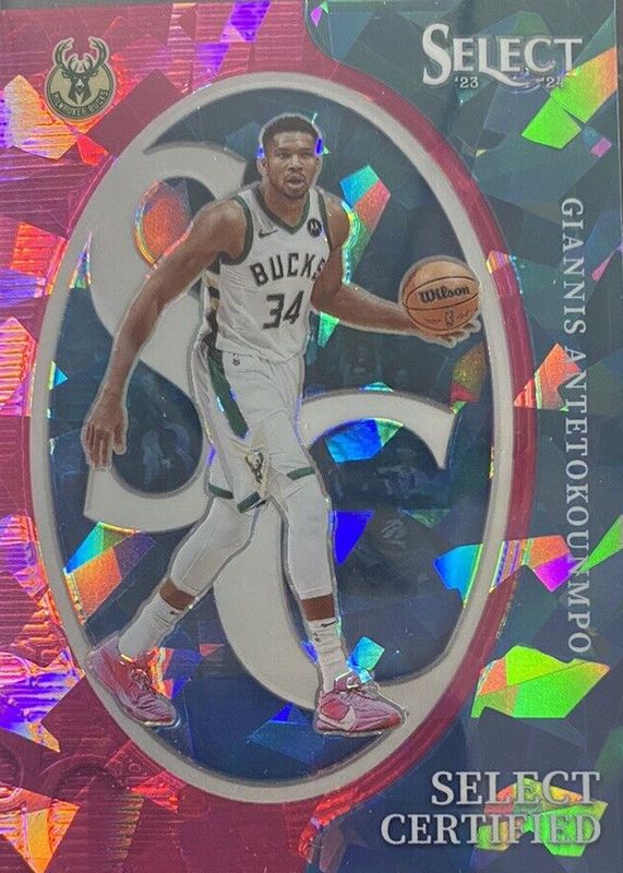 2023-24 Select Giannis Antetokounmpo Certified Pink Cracked Ice /99 Prizm