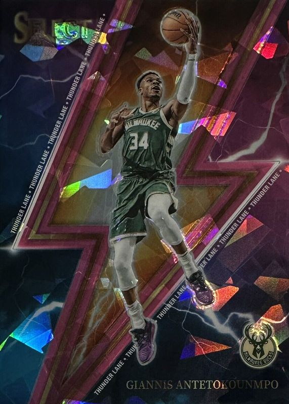 2023-24 Select Giannis Antetokounmpo Thunder Lane Pink Cracker Ice /99