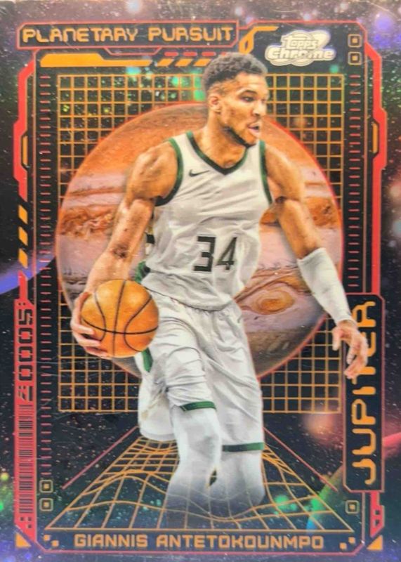 The Giannis Antetokounmpo 2023 Topps Chrome Cosmic #PPJ-3 Planetary Pursuit - Jupiter card in Raw condition has not changed in price in the last 30 days and was last sold for $40.00 .