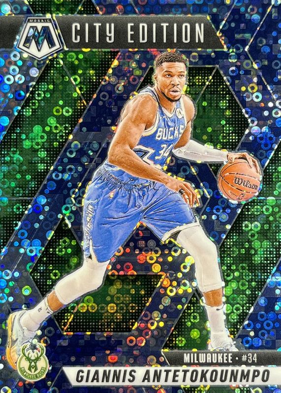 The Giannis Antetokounmpo 2024 Mosaic #282 City Edition - Fast Break Blue Camo /35 card in Raw condition has not changed in price in the last 30 days and was last sold for $13.00 .