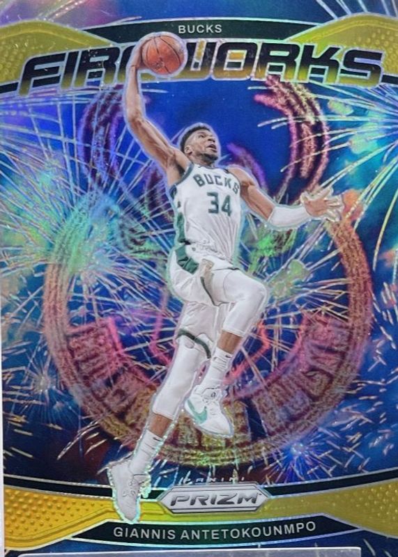The Giannis Antetokounmpo 2024 Prizm #4 Fireworks - Gold /10 card in Raw condition has not changed in price in the last 30 days and was last sold for $73.53 .