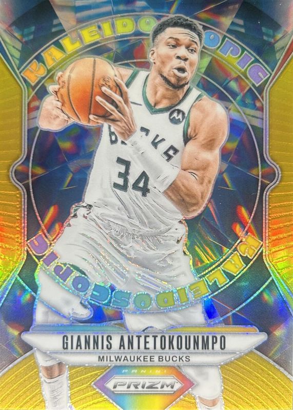 The Giannis Antetokounmpo 2024 Prizm #11 Kaleidoscopic - Gold /10 card in Raw condition has not changed in price in the last 30 days and was last sold for $158.50 .